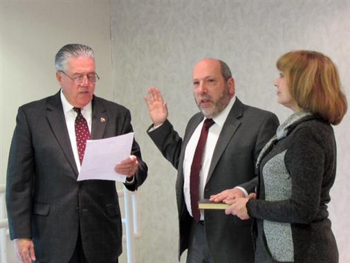 Deputy Mayor Peter V. Yeager, for 2016, was administered the oath of office by Mayor Janice S. Mironov, while his wife Shari and mother Rose Marie Colletti hold the Bible.