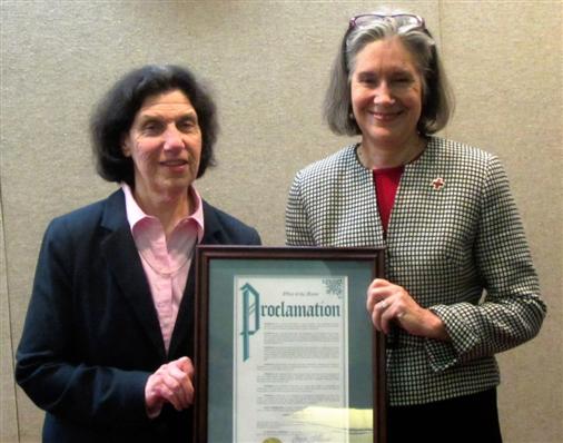 Pictured (from left to right) are: Council Member Alan Roseberg; Angie Casciano, Board Member, RISE; Nancy Laudenberger, Board President, RISE; Mayor Janice S. Mironov; Leslie Koppel, Executive Director, RISE; Jenna Drake, Board Member, RISE; Carlos Fernandez, Board Member, RISE, and Elizabeth Morley, Board Vice President RISE. -
