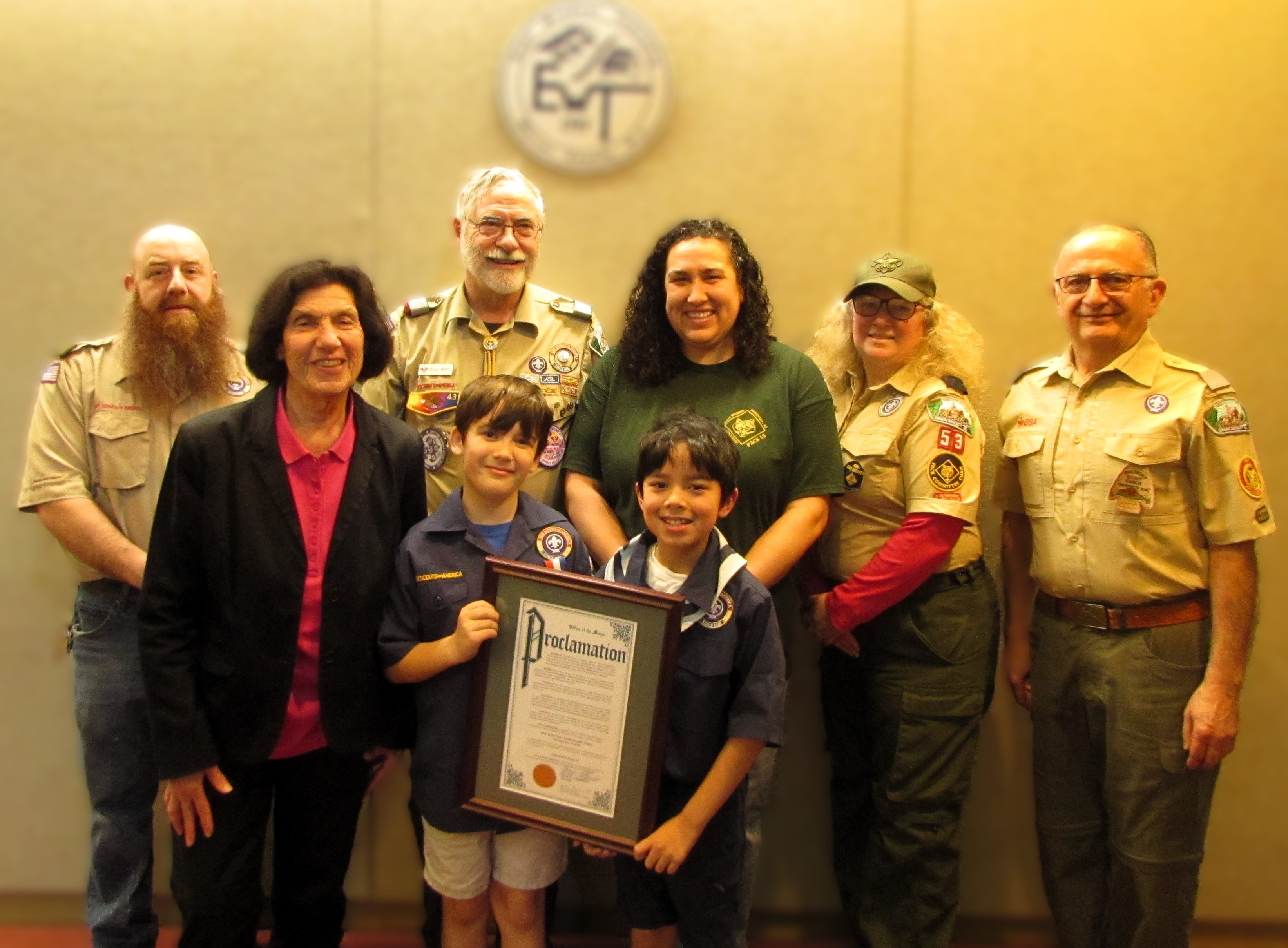 The Mayoral Proclamation, noting that the Boy Scouts of America was officially founded in 1910 and celebrating its 116th anniversary, praised Boy Scouting as a “youth program of character development, value-based programs and leadership training.” The Proclamation further states, “The Boy Scouts have continued to set an excellent example for all through their volunteerism, commitment to others, and dedication to bettering themselves and their communities." Mayor Mironov’s Proclamation expressed appreciation to, and commended the outstanding work of, the Boy Scout organization, their scout members, leaders and volunteers in our community.