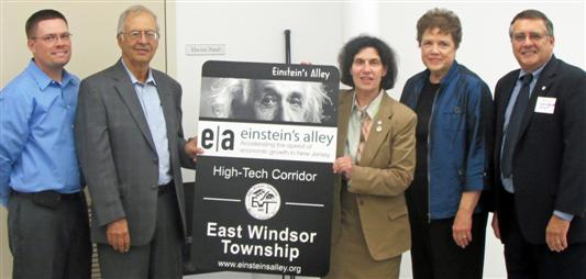 Einstein's Alley Executive Director Katherine Kish stated, "East Windsor Township is located at the heart of Einstein's Alley, strategically located between New York City and Philadelphia, and we look forward to continuing our effective economic development partnership with Mayor Mironov and making New Jersey's Einstein's Alley region the Silicon Valley of the East Coast. These new signs underscore East Windsor Township's success and commitment to local economic development and attracting high-tech companies to East Windsor Township."